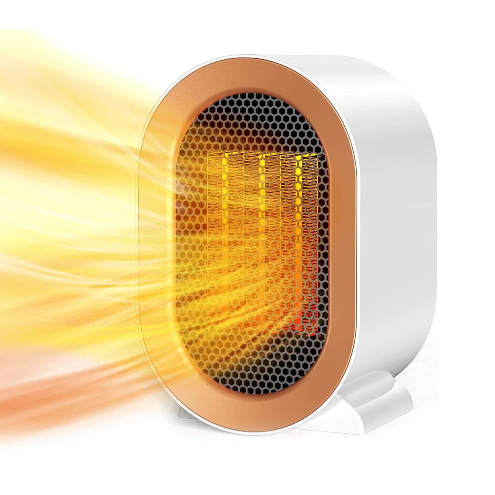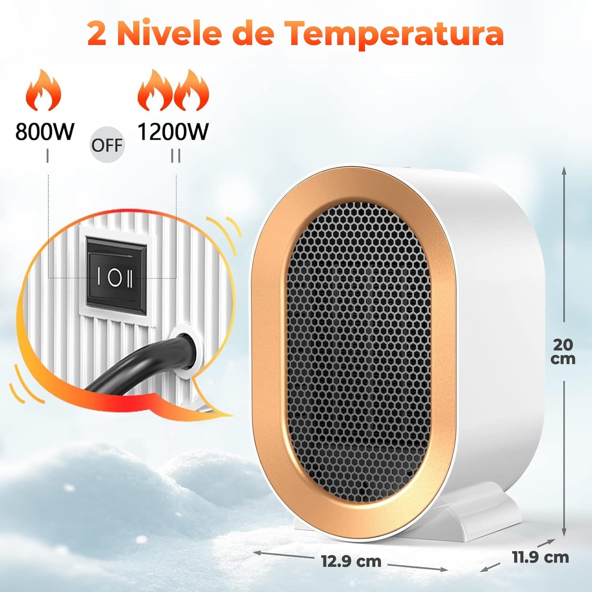 Aeroterma ceramica electrica Timebox, compact si silentios, cu incalzire rapida 1200W, reglabil in 2 trepte, pentru birou, Alb