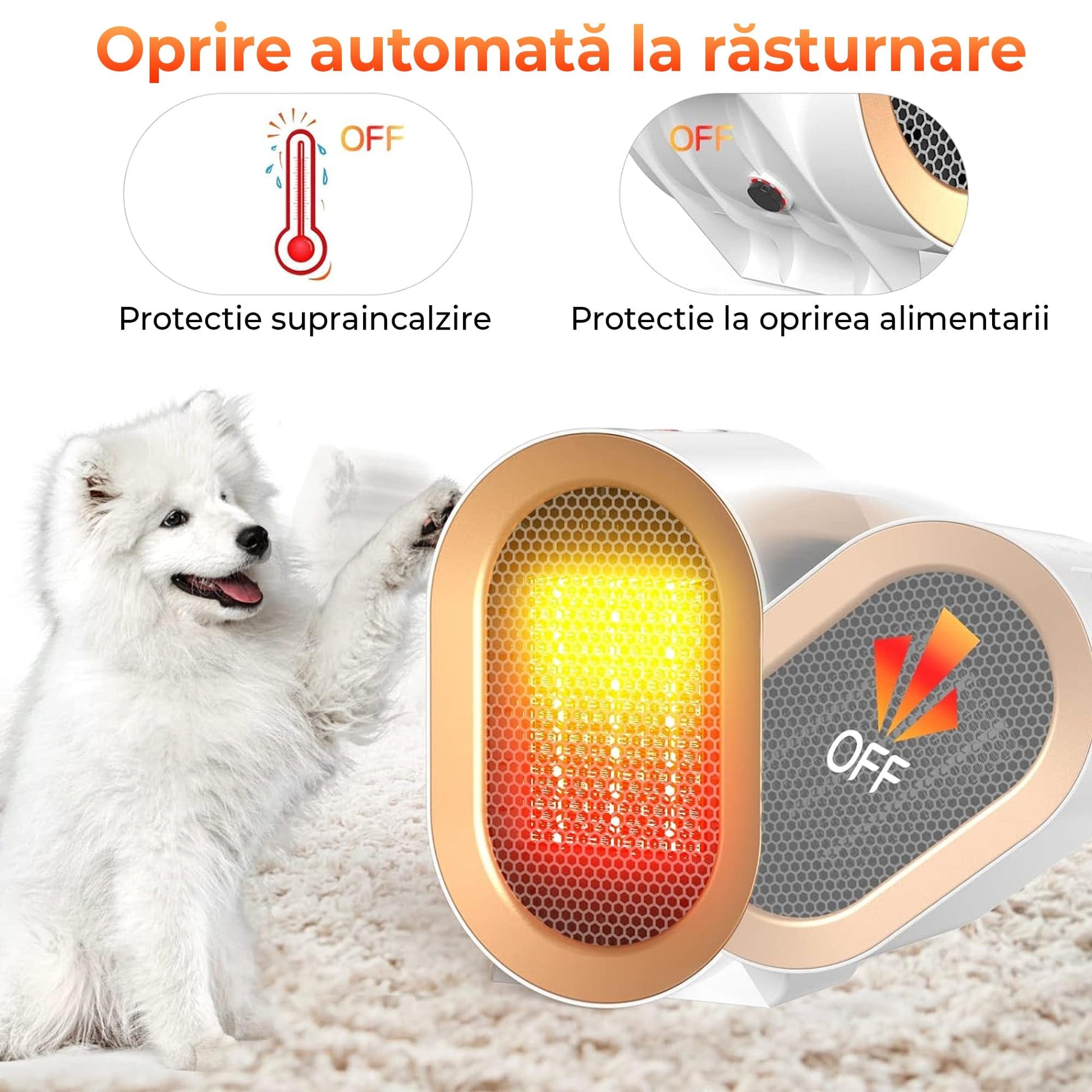 - Tehnologie ceramica: Elementele de incalzire ceramice asigura o distributie uniforma a caldurii, mentinand o temperatura constanta si confortabila.