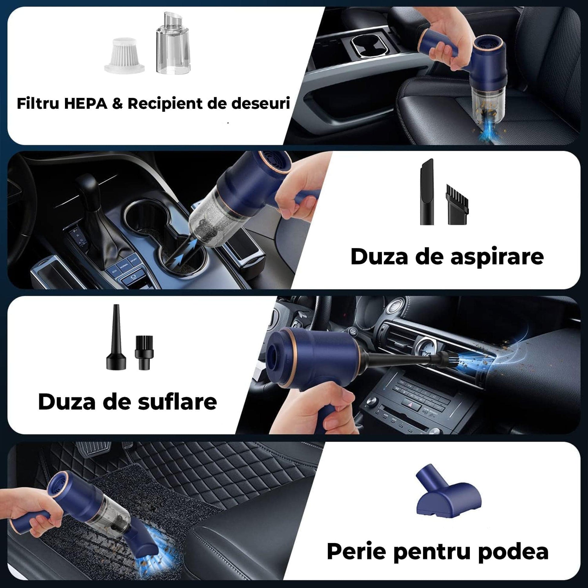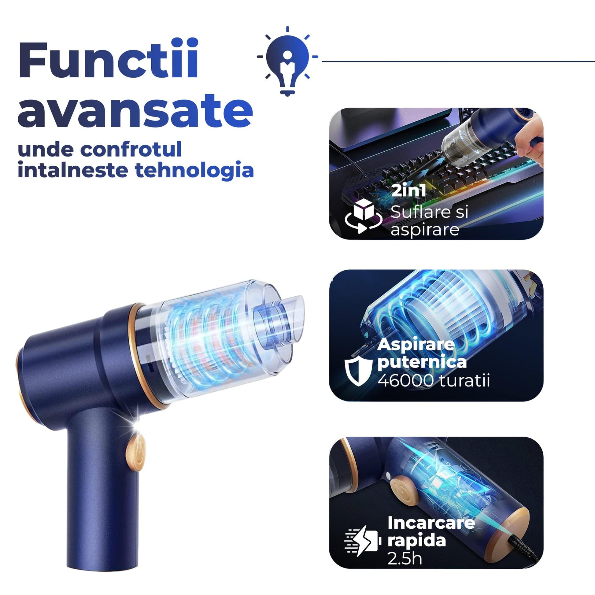 Aspirator portabil 2 in 1 – combina functia de aspirare cu cea de suflare pentru o curatare completa si flexibila