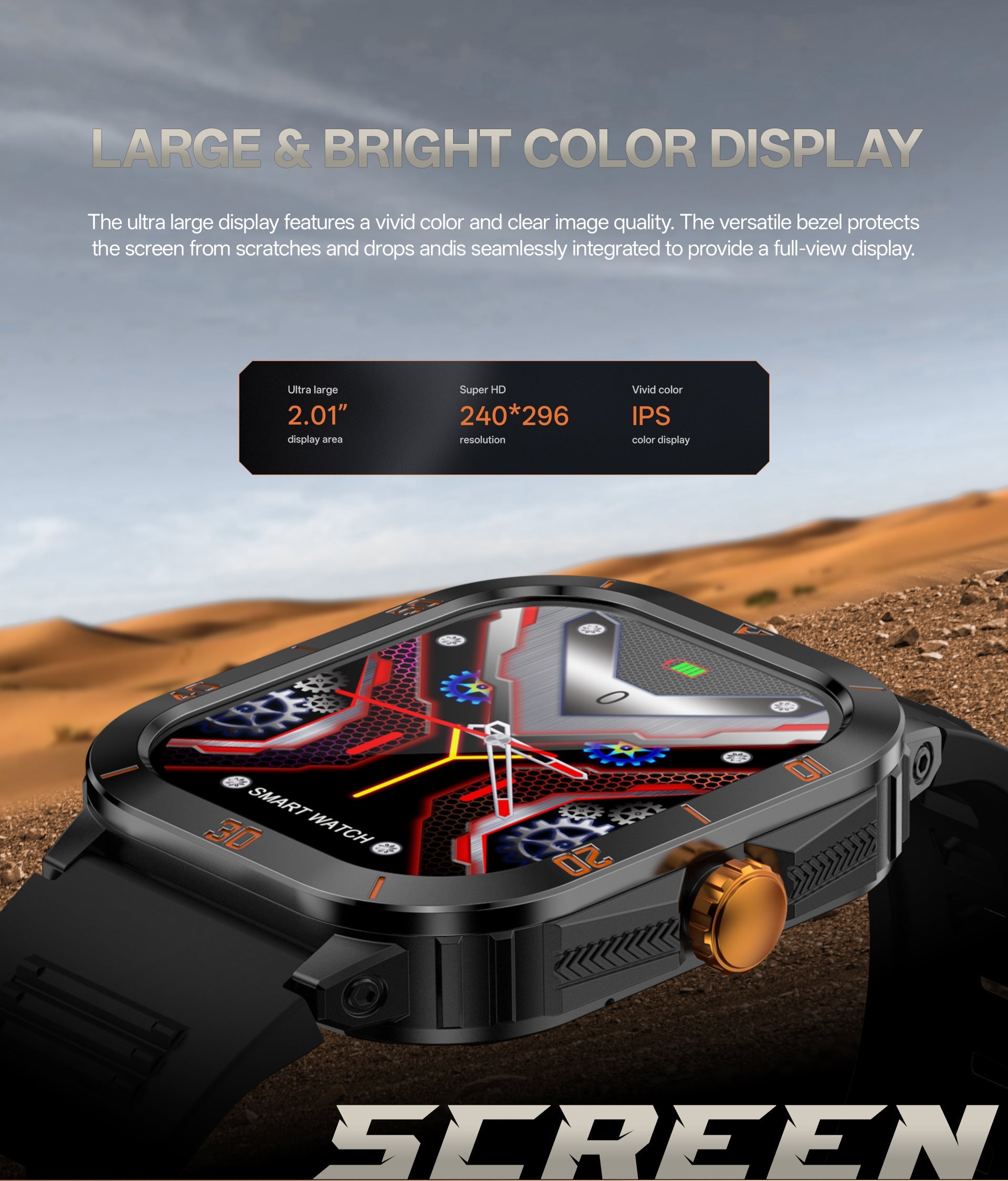 Descoperă ceasul inteligent Smart Watch 2.01 inch cu Bluetooth, apeluri telefonice, notificări social media și funcții avansate de sănătate: monitorizare somn, ritm cardiac, și contor calorii. Include moduri sport, încărcare wireless și autonomie extinsă de 5-10 zile. Ideal pentru fitness, birou și activități zilnice.